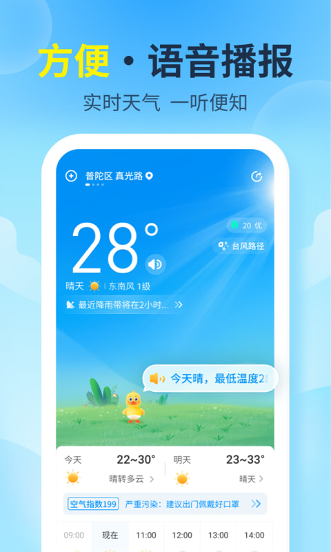 最好天气,一款免费的天气信息查询软件,可提供2小时降雨提醒、预报未来15日天气情况及未来96小时的天气情况。覆盖中国4万个城市、乡镇及街道。实时查看天气变化和空气质量指数、温度趋势、PM2.5等信息。提供您日常所需的穿衣、钓鱼、紫外线、感冒、运动、洗车等生活指数。语音播报暴雨、冰雹等恶劣天气提前提醒,助您从容应对各类突发天气!