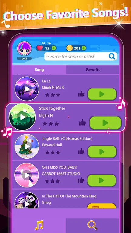 在《砖块捕捉:钢琴之旅》中,玩家可以从海量的音乐库中选择自己喜爱的歌曲。无论您喜欢古典乐、流行音乐还是电子舞曲,游戏中的曲风多样化能满足每位玩家的需求。每一首歌曲都经过精心挑选,以确保良好的节奏感和丰富的音色体验,让您在享受音乐的同时,沉浸在精彩的游戏过程中。
