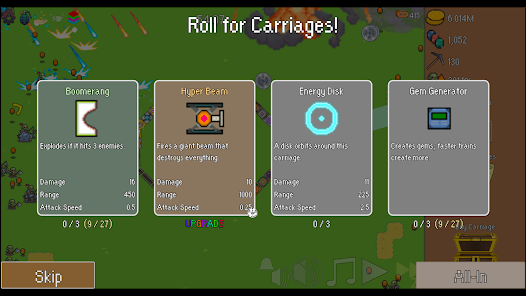 总之,《全体登船!防御列车》为玩家提供了一个紧张刺激的战斗体验。通过收集资源与升级车厢,玩家能够在这个充满挑战的世界中不断成长,迎接更强的敌人和更复杂的局面。游戏的设计旨在让每位玩家都能找到属于自己的策略与乐趣,成为真正的列车长。