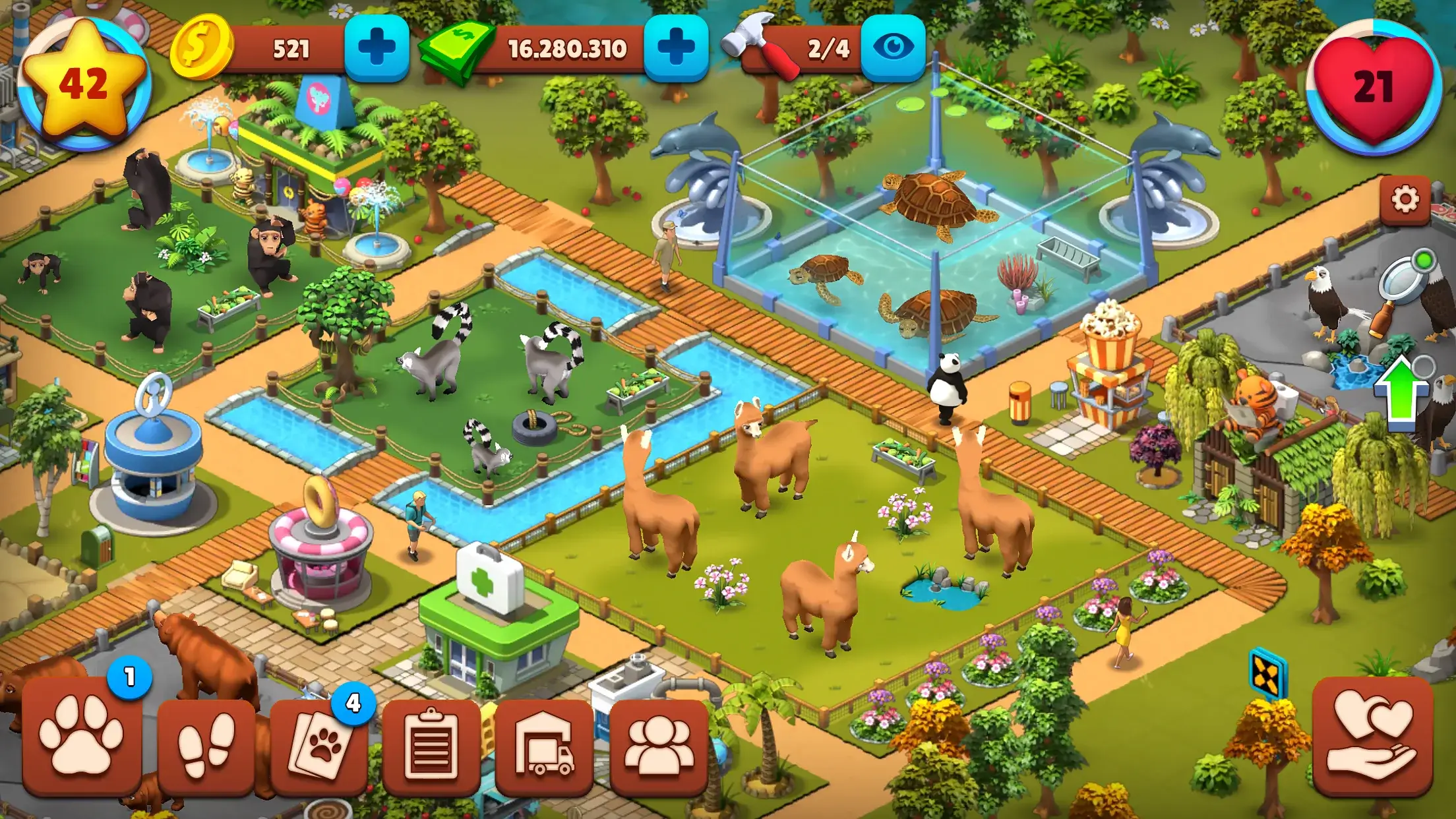 游戏的核心玩法围绕着对动物的精心照顾展开。从迷人的小兔子到雄伟的大象,各种动物都有独特的需求和个性。你需要花时间与它们互动,了解它们的习性,并提供合适的食物和栖息环境。每一个细节都至关重要,因为它们的健康和幸福,直接影响到动物园的游客体验和声誉。
