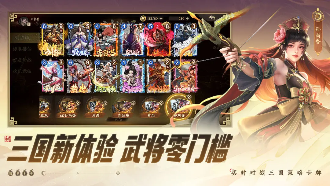 《夺帅》是一款以三国历史为背景的实时对战策略卡牌游戏,玩家可以在其中体验到三国时期的丰富历史和文化。这款游戏不仅继承了经典卡牌对战的元素,同时通过创新的玩法和简单的操作,让玩家能够在短时间内上手并享受游戏的乐趣。无论是对卡牌策略爱好者,还是初心者,都能在《夺帅》中找到属于自己的快乐体验。