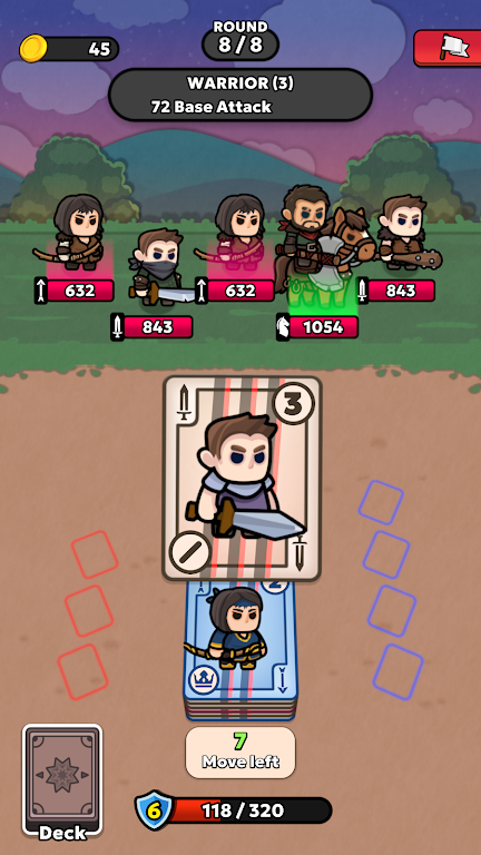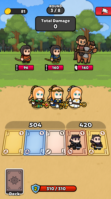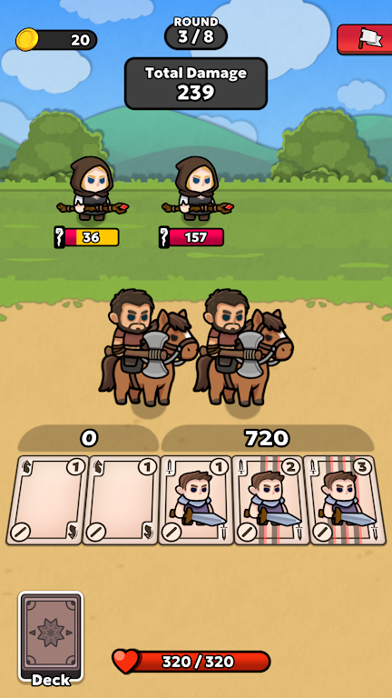 在游戏中,您将不断与敌人碰撞,并在此过程中构建和升级您的牌组。每种卡牌代表一个独特的单位,分别归属于四大类:近战、远程、骑马和魔法。这些单位都有各自特殊的能力,您需要根据敌人的特性来选择搭配,从而最大化输出和防御效果。