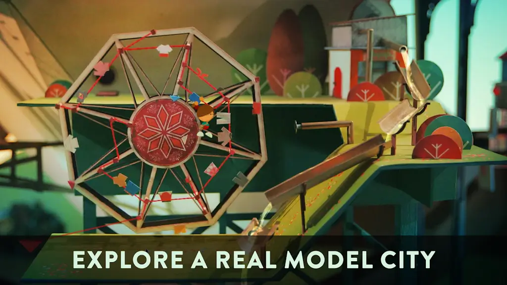 《爷爷的城市》的视觉风格无疑是一大亮点。游戏中所有的环境和角色均由真实的艺术品构成,每一个细节都展示了制作者的匠心独运。从城门之上的空中花园到困在巨大水车中的船只,从悬崖中的迷人房屋到曲折的街道,每个场景都如一幅精致的画卷,吸引着玩家不断探索。