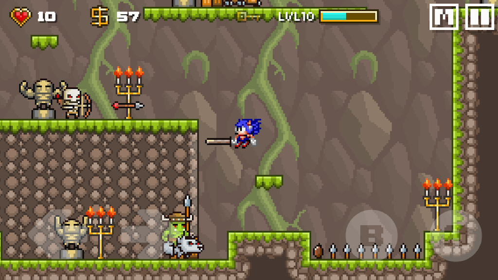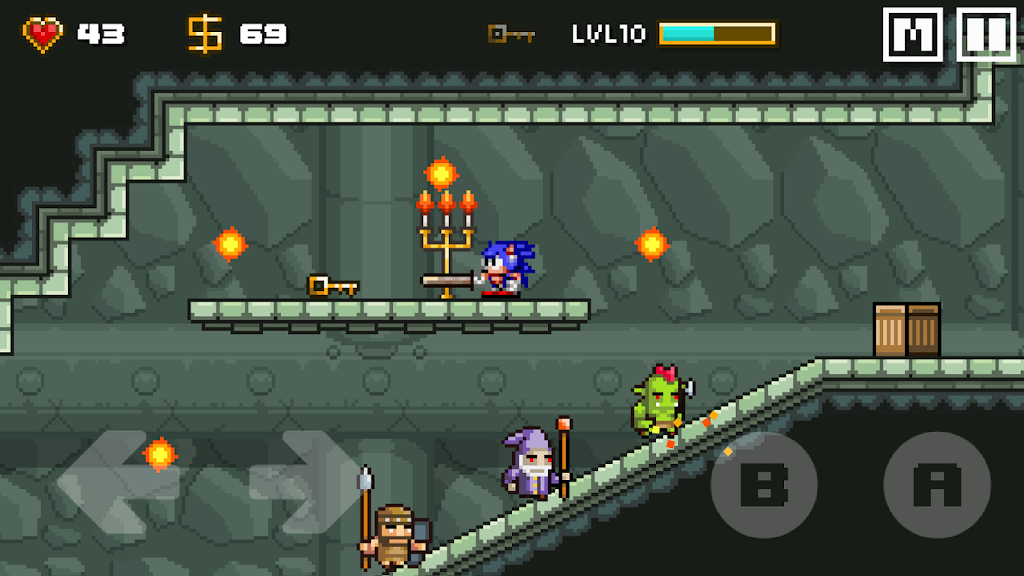 《蓝之剑》提供了75个精心制作的关卡,每一个关卡都独具匠心,挑战玩家的反应能力和策略思维。蓝将穿越各种环境,从幽深的森林到险峻的山脉,甚至是诡秘的地下城。每个关卡不仅充满了敌人和障碍,还隐藏着秘密和宝藏,等待玩家去发现和探索。