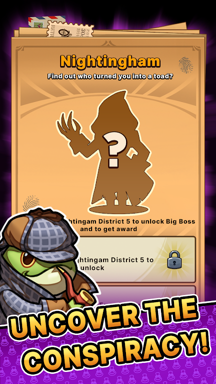 《侦探之路》是一款兼具侦探、推理和奇幻冒险的放置RPG游戏。通过丰富的剧情、多样的角色、创新的战斗系统和深刻的决策对话模式,玩家将在探索过程中收获无限乐趣。您准备好迎接挑战,成为这位青蛙侦探,揭开隐藏在迷雾中的真相了吗?这是一个属于您的故事,而侦探之路也正待您来踏上。