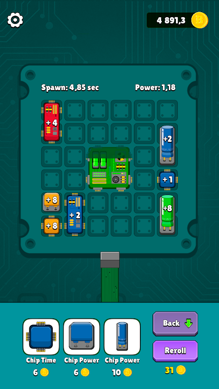 游戏的核心机制是芯片合并。您可以将相同类型的芯片组合在一起,创造出更强大、更高效的芯片。这一过程不仅仅是简单的叠加,而是需要您运用策略和智慧来选择最佳组合。强大的芯片能够为您的微电路带来更多的能量和收益,加速您的发展之路。
