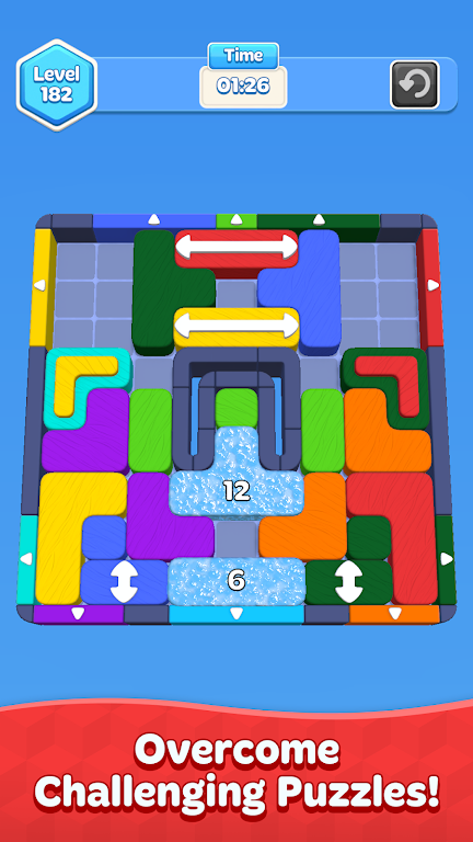 在木块消消乐:色彩狂欢中,您的主要任务是滑动积木,以清除棋盘上的木块。您需要将相同颜色的方块移动到对应的门上,从而将它们取出。游戏中设置了多种障碍,例如箭头块和锁定块,使每个关卡都充满变化和挑战。策略是您在游戏中获胜的关键,合理计划每一步行动,将帮助您更快地解决谜题并获得高分。