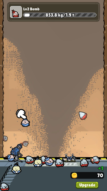 游戏的乐趣不仅在于简单的操作,还在于你如何选择和升级这些矿工角色。每次成功挖掘后,你将获得黄金和其他资源,用于升级你的矿工,使他们的能力更加卓越。通过提升挖掘速度和挖掘深度,你将能够探索更深的地下,发现更珍贵的资源。这种策略与资源管理的结合,使游戏在放松的同时也充满了挑战。