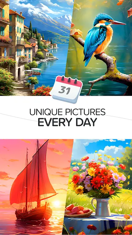 为了让用户体验到更多的乐趣和挑战,每日一色:禅意色彩数字提供了一系列丰富的涂色挑战。您可以赚取独特的奖励图片和加速道具,这些不仅能提升您的涂色体验,还能激励您不断创造和挑战自我。体验完成每一幅作品后的成就感,让每一次涂色都成为一种积极的反馈,激励您继续发挥创造力。