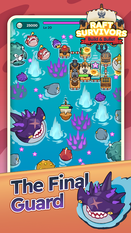 《木筏求生》融合了激烈的弹幕射击和深具策略性的移动塔防玩法,为玩家带来了独特的游戏体验。其鲜艳的视觉风格和流畅的操作体验,让每个玩家都能沉浸在这个充满生存挑战的世界中。通过资源的合理利用和木筏的巧妙建造,玩家将体验到从脆弱到坚不可摧的进化过程,强烈的成就感无时无刻不在激励着玩家前行。