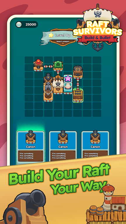 玩家可以在木筏上建造各种自动炮塔和防御模块,形成强大的火力覆盖。通过组合与升级不同的武器模块,能够创造出强悍的火力输出,迅速消灭不断袭来的海怪。这种弹幕式的攻击模式不仅令战斗更加激烈,还强化了玩家对于战斗节奏的掌控感。
