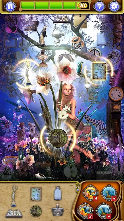 为了帮助你更好地完成挑战,隐藏物品 - 精灵森林还提供了一系列强大的魔法道具。你可以使用魔法戒指来寻找隐藏的物品,也可以饮用药水获得暂时的加成。每种道具都有其独特的效果,帮助你在游戏中更顺利地前行。