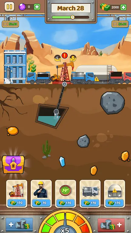 在《深钻:石油王国》中,你将带领自己的团队,踏上一场充满挑战与机遇的石油勘探与开发之旅。作为一名初出茅庐的能源巨头,你需要从无到有,逐步建立起一个庞大的石油产业帝国。这款游戏为你提供了一系列极具沉浸感和策略性的挑战,让你充分体验全球能源市场的复杂性。