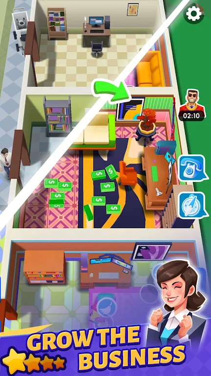 《我的办公室》为您提供了招聘50多名各具特色的员工的机会,包括严谨的会计师、技术精湛的工程师以及魅力四射的租赁代理。您可以根据员工具备的各种技能进行系统培训,并根据他们的优势合理分配角色。在关键时刻,观察他们的“狂热模式”如何为您的办公帝国助力,提升整体生产力。