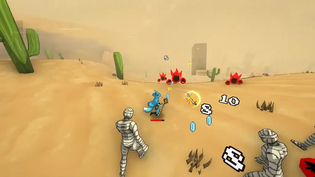 在与敌人交战时,玩家会获得蓝色水晶,这些水晶是提升英雄等级与能力的重要资源。通过不断击败敌人并收集水晶,你可以选择新的强力升级和武器,帮助你应对更加严峻的挑战。每一次升级都可能成为扭转战局的关键,策略性地选择和分配升级点将决定你的命运。