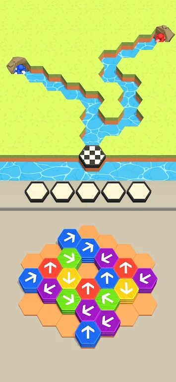 在六角路径中,玩家将踏上一场刺激的解谜之旅,面临着各种挑战和考验。在这个独特的六边形迷宫中,洪水汹涌而来,困住了形形色色的角色。每个人物都需要通过一条安全的通道逃生,而这个通道正藏在一个复杂的拼图之中。你的任务是通过合理的策略和逻辑,帮助这些角色找到通向救援船的路径。