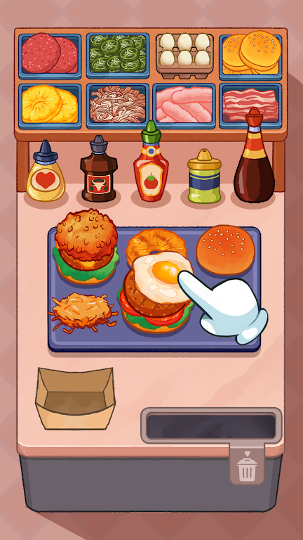 在《饥饿时刻》中,汉堡制作是核心玩法。你需要熟练掌握翻转肉饼、叠加配料以及烤制面包的技巧。美味的汉堡不仅需要新鲜的食材,还需要你的细心与创意。各种各样的食材让你可以自由发挥,制作出各式各样的汉堡,满足顾客的不同需求。