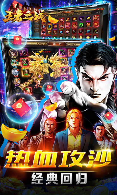 《王者之战》一款都市风格的游戏。这款游戏是有都市为游戏的核心,游戏中有多个不同的游戏阵营,玩家可以任意选择加入,还原经典,集结兄弟们寻回属于我们的热血年代!兄弟情义,何为忠!何为义!如何一统江湖?经典BOSS云集于此,“大哥”快来招募他们。钞票、美女、兄弟都等着你,敢问“大哥”你准备好了没?