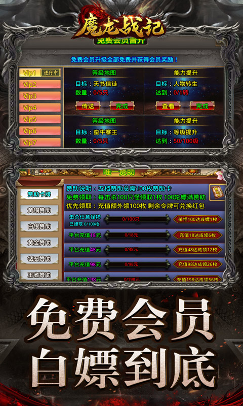 魔龙战记(送V无限刀刀刀),全新超变无限刀版本,开局就炫酷技能,自动回收,范围捡取,巡航挂机!超高爆率!特权,会员,赞助免费送,敢来就敢送!助你砍遍全图!跨服PK,特色系统,群体范围神技,全新地图,超多特色玩法等你来探索,活动boss无限刷!充值货币无限爆!准点攻沙,等你来战!全新神器超变版本来袭!还在等什么,快来加入吧!