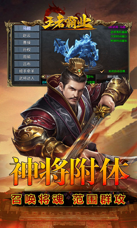 王者霸业(神将亿万爆爆爆),全新冰雪微变无限刀版本,范围群伤切割,送强力神将,充值卡,炫酷时装,自动回收,范围捡取!超高爆率!全屏嘲讽,范围切割,炫酷范围群攻,助你砍遍全图!全新地图,超多隐藏福利等你来领,活动boss无限刷!充值货币无限爆!准点攻沙,等你来战!全新冰雪微变无限刀版本来袭!还在等什么,快来加入吧!