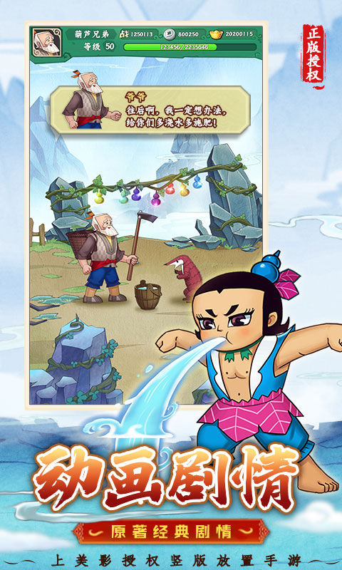 2.[正版授权]童年回忆经典动画葫芦娃正版手游,100%还原动画剧情,一起去救爷爷吧!