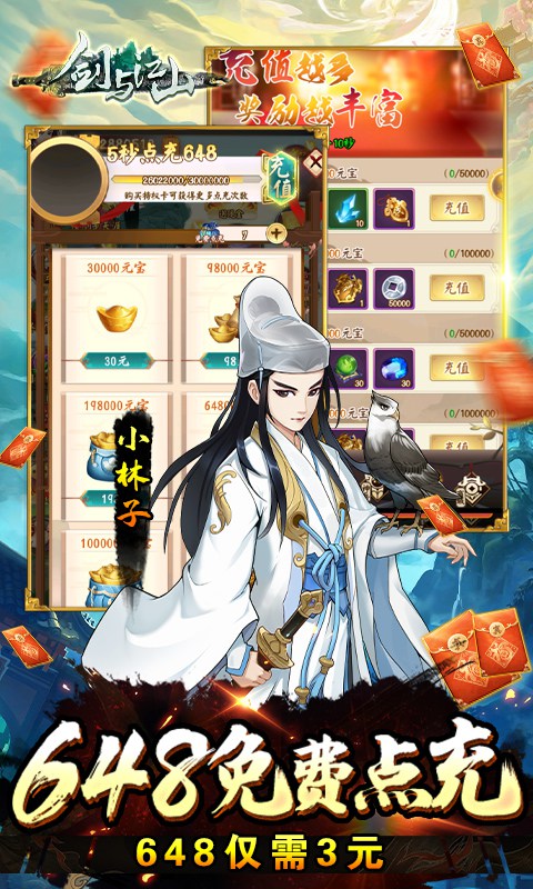 《剑与江山(无限制0.05折)》国创武侠奥义对决手游大作,开局送十万真充,GM现金点提充代替真实支付!游戏以恢宏的大武侠为世界观,创新的武功对冲战斗系统