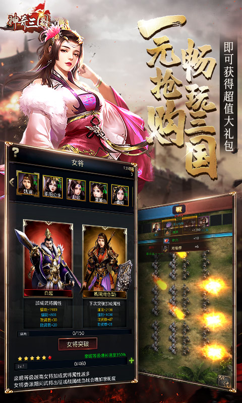 这是一款以三国历史为背景的策略手游,玩家可以在游戏中升级自己的城池,收集三国名将,通过挑战经典三国战役和野外流寇来提升部队战力。玩家将分属不同的国家,对城池展开争夺,获胜者可以扩展本国版图,最终攻占皇城洛阳,统一天下