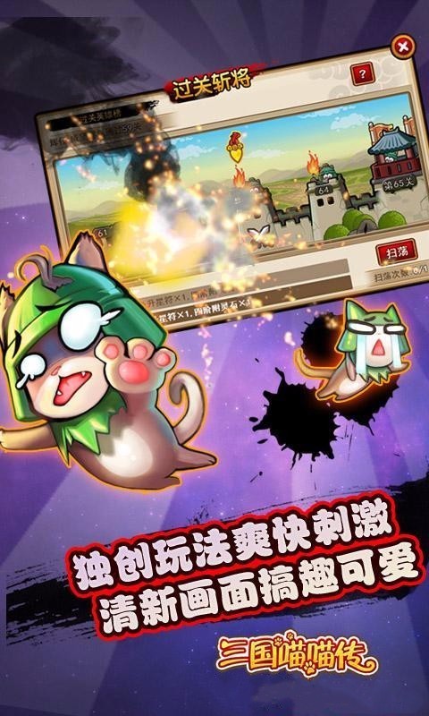 《三国喵喵传》是一款大型三国战争类游戏,三国喵喵传Q萌卡通的界面设计,各种背景音乐的代入,让你感受休闲的三国战争乐趣。一键挂机,自由升级,超高的爆率,让你获得各种元宝福利。游戏画质优化,全新的人物配音代入,还有完善的养成模式,喜欢就来三国喵喵传里尝试一下吧。