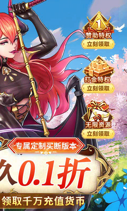 2、创角即送VIP6,10000元充值卡,HR金将,定制钥匙,1000万金币
