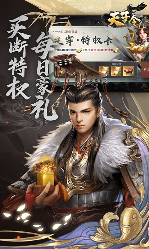 在《天子令》中玩家将扮演一位三国时期的主公,与历史上著名的战略家和勇猛的武将们并肩作战。你需要收集不同的卡牌,每张卡牌代表一个武将,通过合理的搭配组成强大的阵容。卡牌的属性和技能各不相同,玩家可以根据自己的战术喜好进行选择,制定独特的战略。 除了卡牌搭配,还有各种战役和挑战等待着玩家去完成,通过战胜敌人,提升自己的排名和声望。 采用了精美写实的画面风格,每一个战斗场景都充满了震撼力和视觉享受。游戏还精心打磨了角色形象和细节,让玩家能够感受到历史上伟大将领的英勇和智慧。 如果你是一个喜欢策略游戏和历史文化的爱好者,将带给你前所未有的游戏体验。快来组建属于自己的三国强大阵容,征服敌人,成为真正的三国霸主!