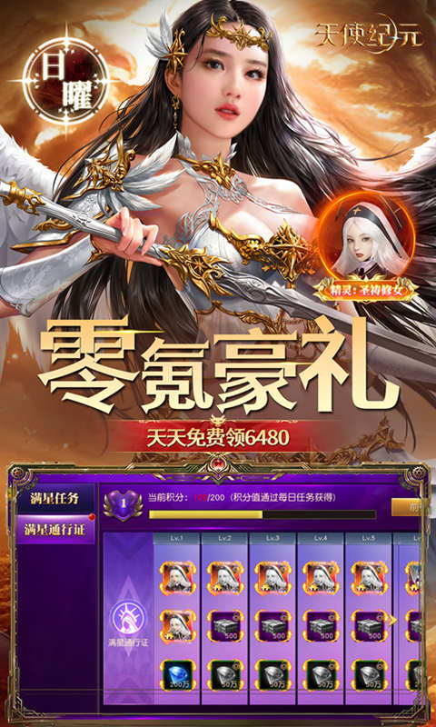 3、领满星礼包,天使、精灵、坐骑、翅膀、神饰样样都有,战力起飞秒天秒地