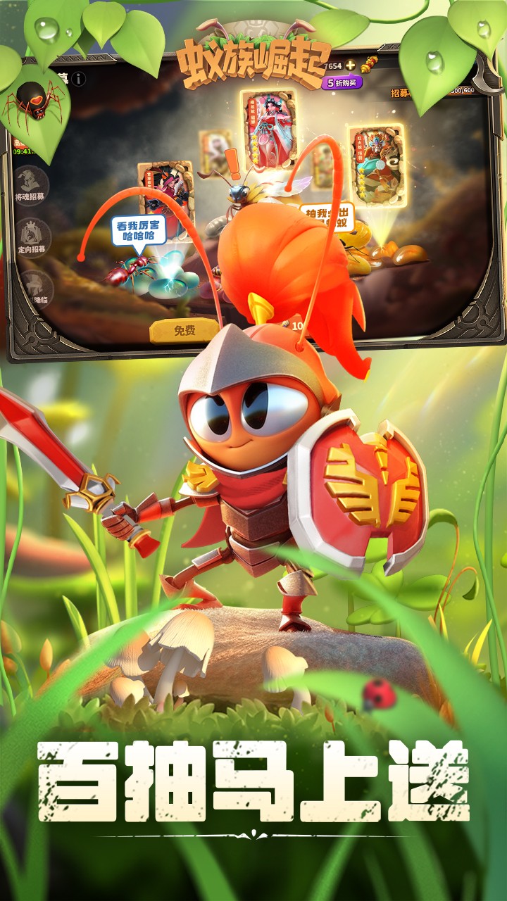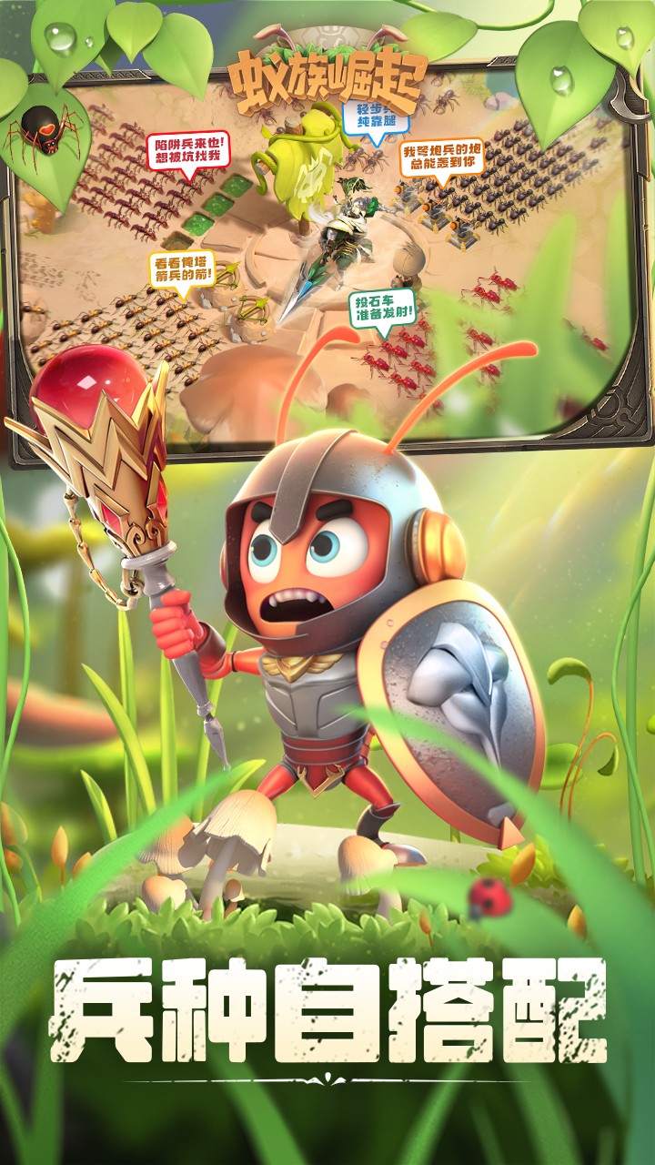 在《蚁族崛起》你将作为蚁族统帅,建造你的专属蚂蚁王国。神机妙算的三国英雄、智勇双全的凯撒,还有数位出类拔萃的豪将,都等待你招募入队,成为蚁族中坚!通过资源囤积、城防修建、战力提升,将一方蚁穴壮大成为兵「蚁」强壮的王国城邦!与百万玩家结盟或是为敌,抵御强敌进攻,联手攻克城池,战无不胜,攻无不取,成为地下世界的霸主!