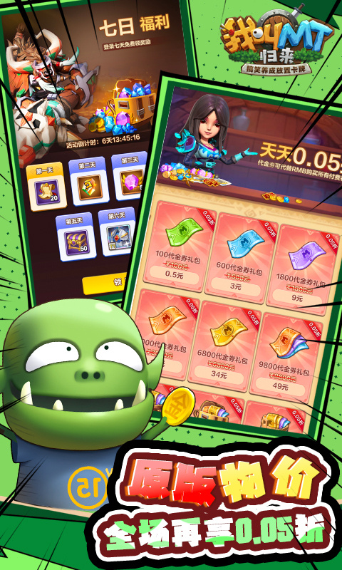 正版动画授权的3D放置卡牌手游《我叫 MT:归来》0.05 折版本重磅来袭!它完美再现动漫角色,让你与哀木涕、傻馒等经典形象再度相聚,带来纯正卡牌体验。玩家能组建五人小队勇闯艾泽大陆,这里上百种 BOSS、数十个大型副本,每日都有全新冒险涌现,时刻刺激着你的挑战欲。海量坐骑、宠物、神器散落各处,收集它们可大幅增强实力,助你在战斗中更胜一筹。战斗机制丰富多样,面对狂暴、复活等特色鲜明的 BOSS,需巧用 “集火”“控制” 策略应对,极其考验策略与操作。而且游戏充满欢乐氛围,在体验与动漫角色并肩作战的热血激情同时,还能尽享社交互动的无穷乐趣,快来加入《我叫 MT:归来》开启属于你的传奇冒险之旅吧!