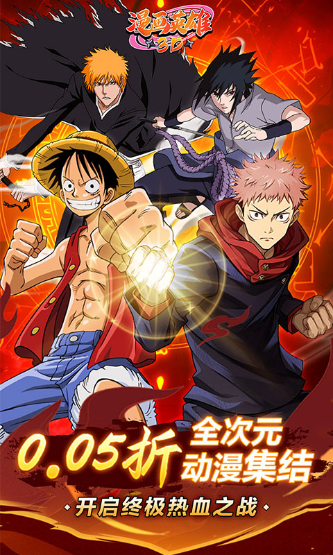 《漫画英雄3D(0.05折次元乱斗)》是一款颠覆传统的横版卡牌手游,集结《海贼王》《鬼灭之刃》《火影忍者》《进击的巨人》《死神》等超多顶流动漫的经典角色,打破次元壁垒,打造史诗级跨作品联动战场!在这里,路飞与佐助并肩作战,炭治郎携手祢豆子对抗巨人,黑崎一护与五条悟展开灵力对决……所有不可能的梦幻组合,皆由你亲手缔造!