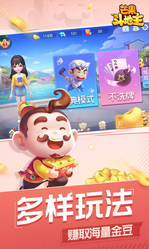 【华丽界面 赢翻全场】古今3D角色亮相牌桌,炫酷界面打牌流畅体验,小芒果带你一路赢金豆,走向巅峰!