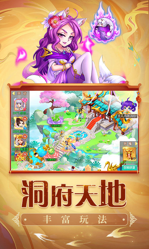 是一款以战力养成为主,集合成宠物收集养成、PVE副本探索、PVP单区宗主,连服宗门,跨服争皇等玩法的H5国风Q版放置回合制手游 !乖萌可爱,勇武有力,各具特色的几十种类型宠物皆可通过游戏内玩法免费获取,每种宠物都拥有专属的技能保驾护航!画风清丽脱俗,战斗刺激带感,还有丰富多样的游戏玩法,无论是PK,竞技还是副本开荒,亦或是悠闲地交友聊天都可以发现许多乐趣,让你在愉快的游戏中和万千仙友一起轻松修仙。