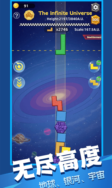通天塔是一款拥有俄罗斯方块元素的建造游戏,玩家可以模仿巴别塔传说建造一座通天塔直到超越宇宙