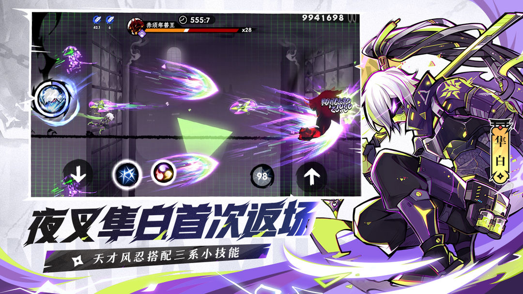 在忍者的世界里,聆听唯美古风与现代摇滚巧妙结合的雅音潮乐,品味东方水墨和日式漫画完美结合的独特画风,电光石火之间,手指腾挪,自重重暗器和刀光剑影中杀开一条血路,开启一场爽快炫目的唯美大冒险!