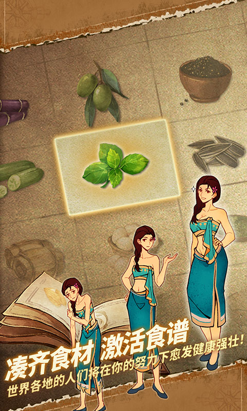 在贸易和交通不发达的过去,人们能获取到的食材种类极少,平民通常只能吃到由谷物制成的稀粥,这类原始饮食只能饱腹且营养单一。而你的任务,是通过海上贸易、 建立航路、生产食材等方式,让人们可以用更多的食材做出营养均衡的菜品,让这个世界进入营养饮食的时代!