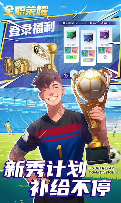 《全职荣耀》是一款模拟经营策略类足球游戏,上线即免费领百抽,超值开服狂欢,巨星养成壕领各种珍稀资源!游戏内球员培养、教练体系、七日登录领未来之星等各种精彩玩法,真实还原绿茵赛场。诸多球迷福利活动助你达成足球巨星梦,别犹豫!快来打造属于你的足球荣耀俱乐部,一起争霸绿茵之巅!