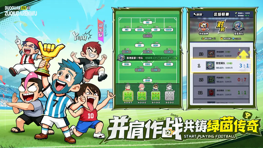游戏中的联赛体系非常完善,玩家将从低级别的村级联赛开始,逐渐挑战更高级别的超级联赛。每一场比赛都是一场战斗,玩家需要运用收集到的战术和球员能力,不断突破对手的防线,争取胜利并积累积分,最终成就属于自己的足球王朝。联赛不仅考验战术配合,更是对团队默契的检验。