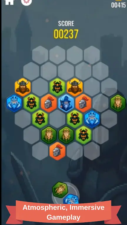 在六角方阵中,游戏玩法基于易上手的合并机制。玩家需要在六边形棋盘上将相同类型的军事战士进行合并,从而提升他们的能力和等级。每一次合并都将改变战场的格局,事关游戏的进程。在这一过程中,玩家必须仔细考虑每一步的行动,因为每一个决定都可能影响最终的结果和分数。