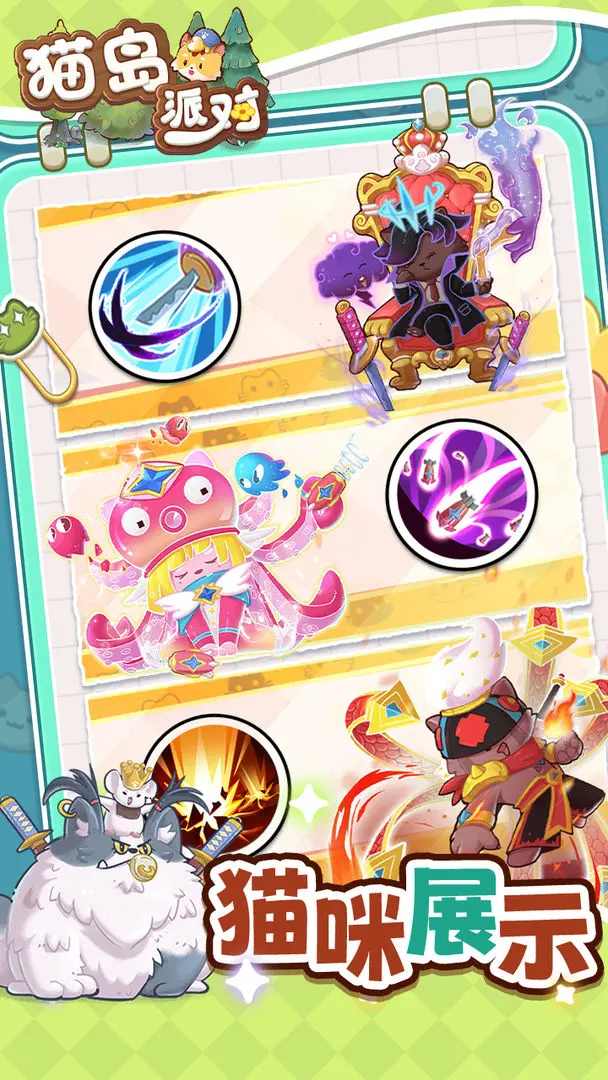 在《猫岛派对(测试)》中,猫咪不仅仅是玩家的建设伙伴,还是战斗中的得力助手。玩家需要召集不同类型的猫咪伙伴,并通过训练与培养,提升它们的能力。每只猫咪都有其独特的技能与属性,玩家要根据角色的特点来制定合理的队伍配置。在面对空盗等敌对势力时,猫咪们将与玩家并肩作战,共同奋勇向前。