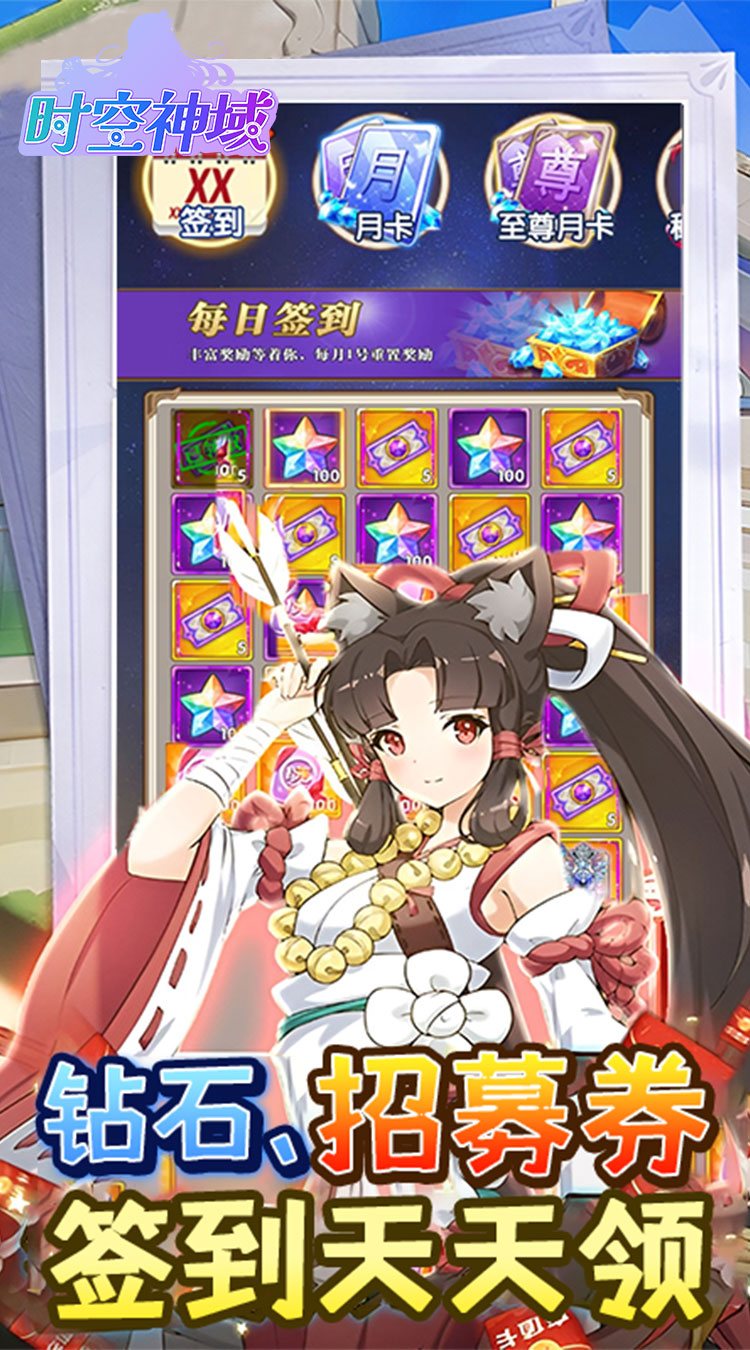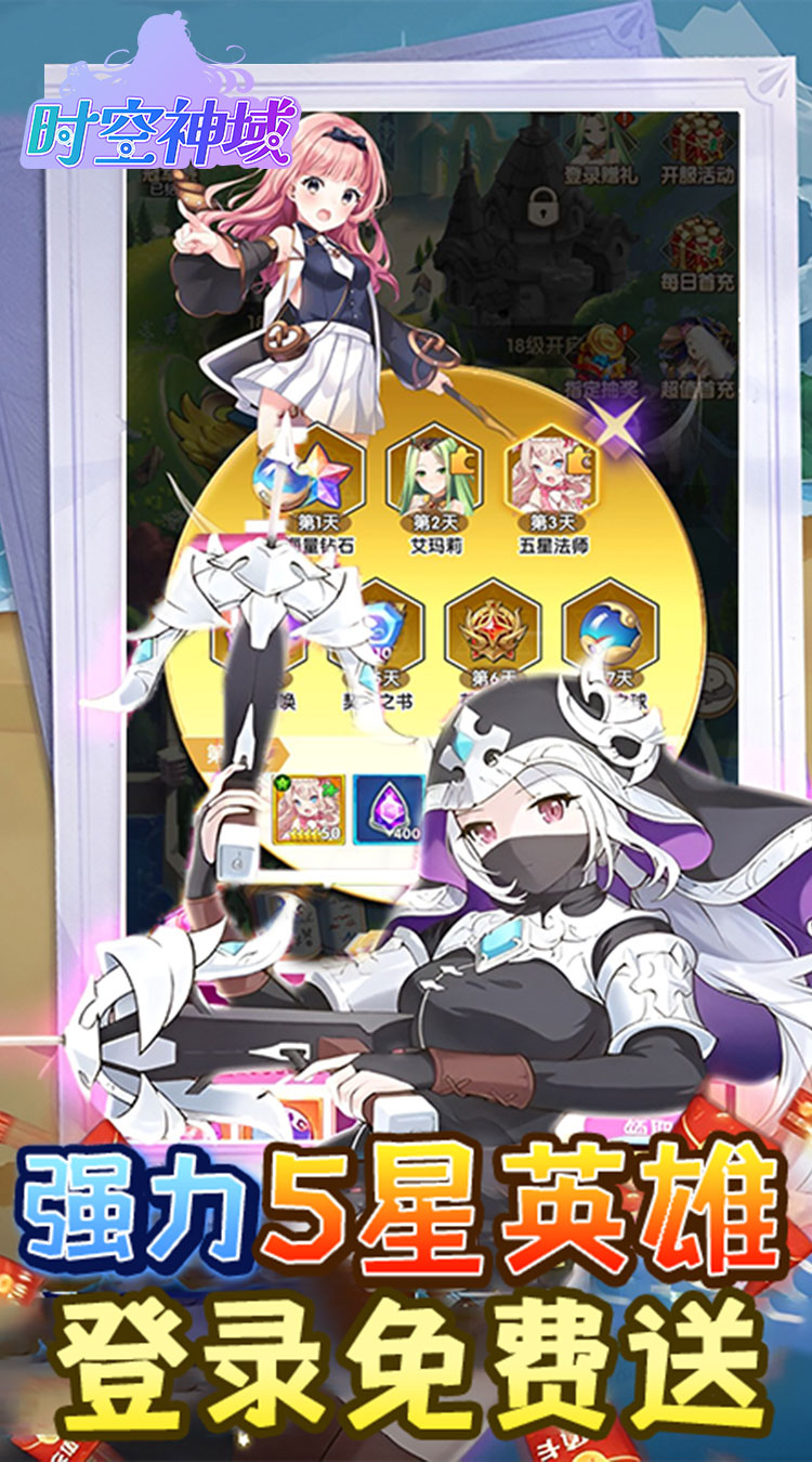 《时空神域(0.05折送五星英雄)》是一款萌御系二次元卡牌手游。精美的立绘,Q萌的战斗画面。超百位可萌可甜可御的美女英雄与你相伴,携手闯关推图、爬塔、竞技、试炼战场,养成简单,双线进化,你可以走出与众不同的进化路线,更有超多福利助力,一起来闯荡世界吧!