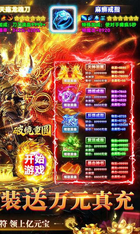 破镜重圆(天天送万充)是一款经典复古传奇手游,内置3折充值福利。散人追梦,超多装备!开局送西凉马超时装、领千万灵符、元宝、自动拾物、自动回收等特权!每天上线送10000元充值卡,上百张地图精彩纷呈,等你来战!游戏中还有大乱斗、血战魔龙等活动,集齐你的兄弟一起血战!超多奖励等你拿!