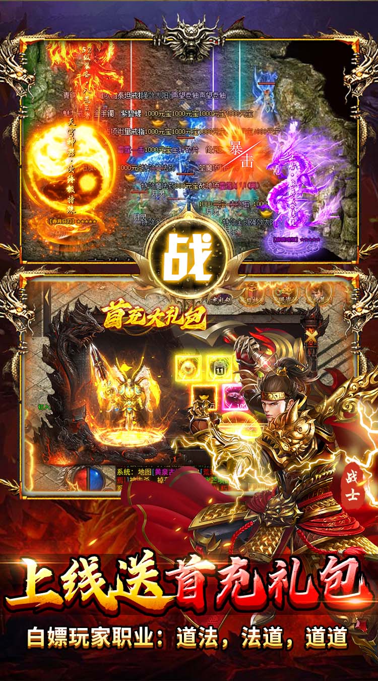 1.创角即送时装、暴打策划狗头称号、海量元宝、自动回收、自动拾取。