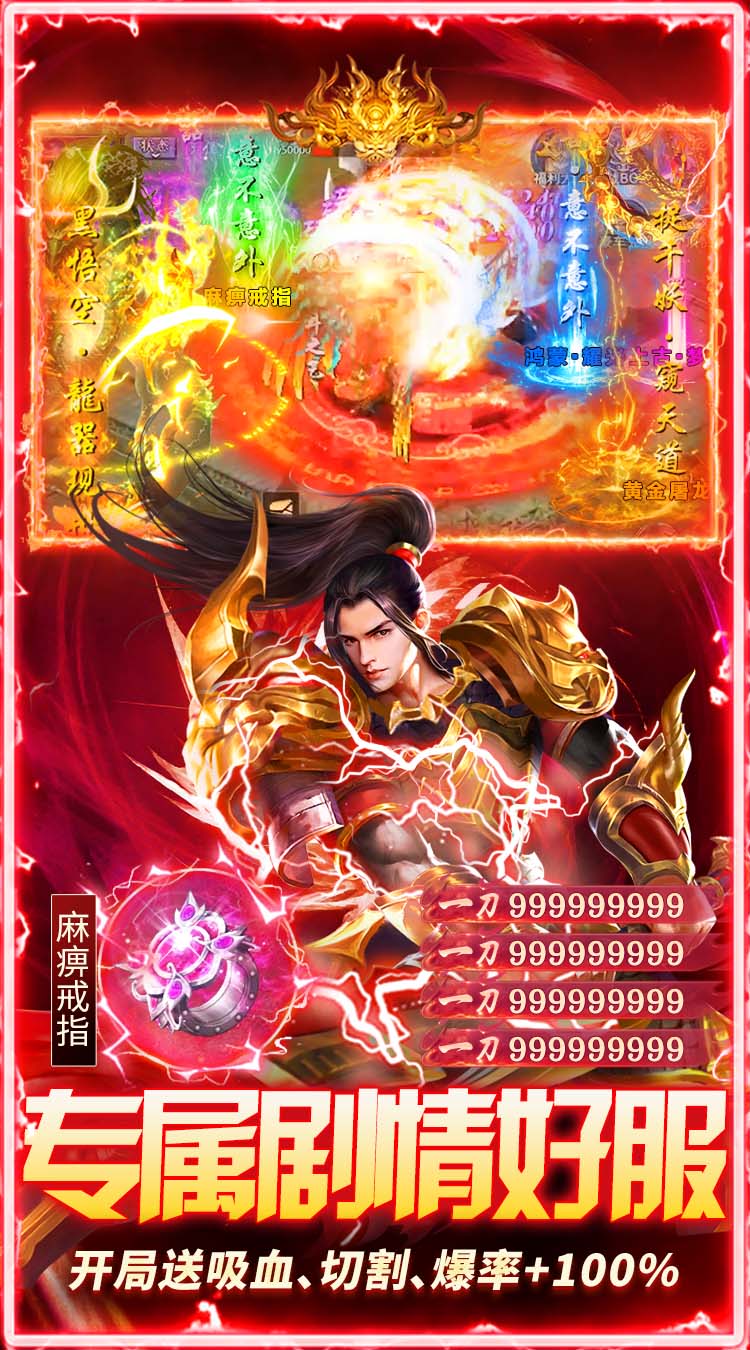 3.开荒福利:送对怪吸血+10%,怪物切割+1000,怪物爆率+100%