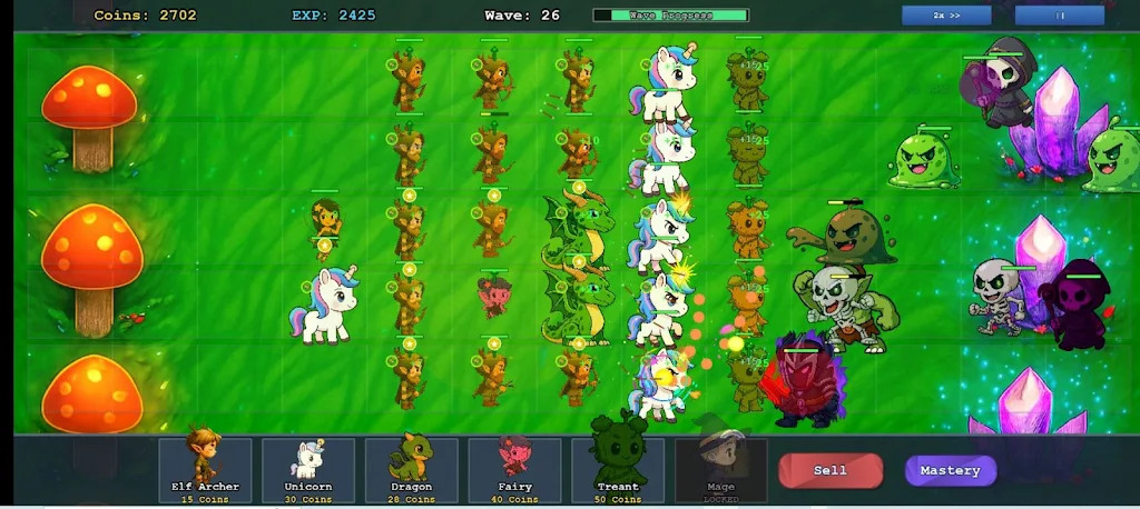 在《圣龙战》中,玩家将接触到多种兵种,这些不仅可以作为防御者,也能在战斗中发挥各自的专长。巨龙可以喷吐火焰,造成大范围伤害,巫师则能施展各种强力法术,改变战局。精灵则以快速的机动性和灵活的攻击手段,让敌人难以捉摸。玩家通过不断的战斗,可以解锁并进化更多兵种,形成强大的协同效应,挑战更高难度的敌人。