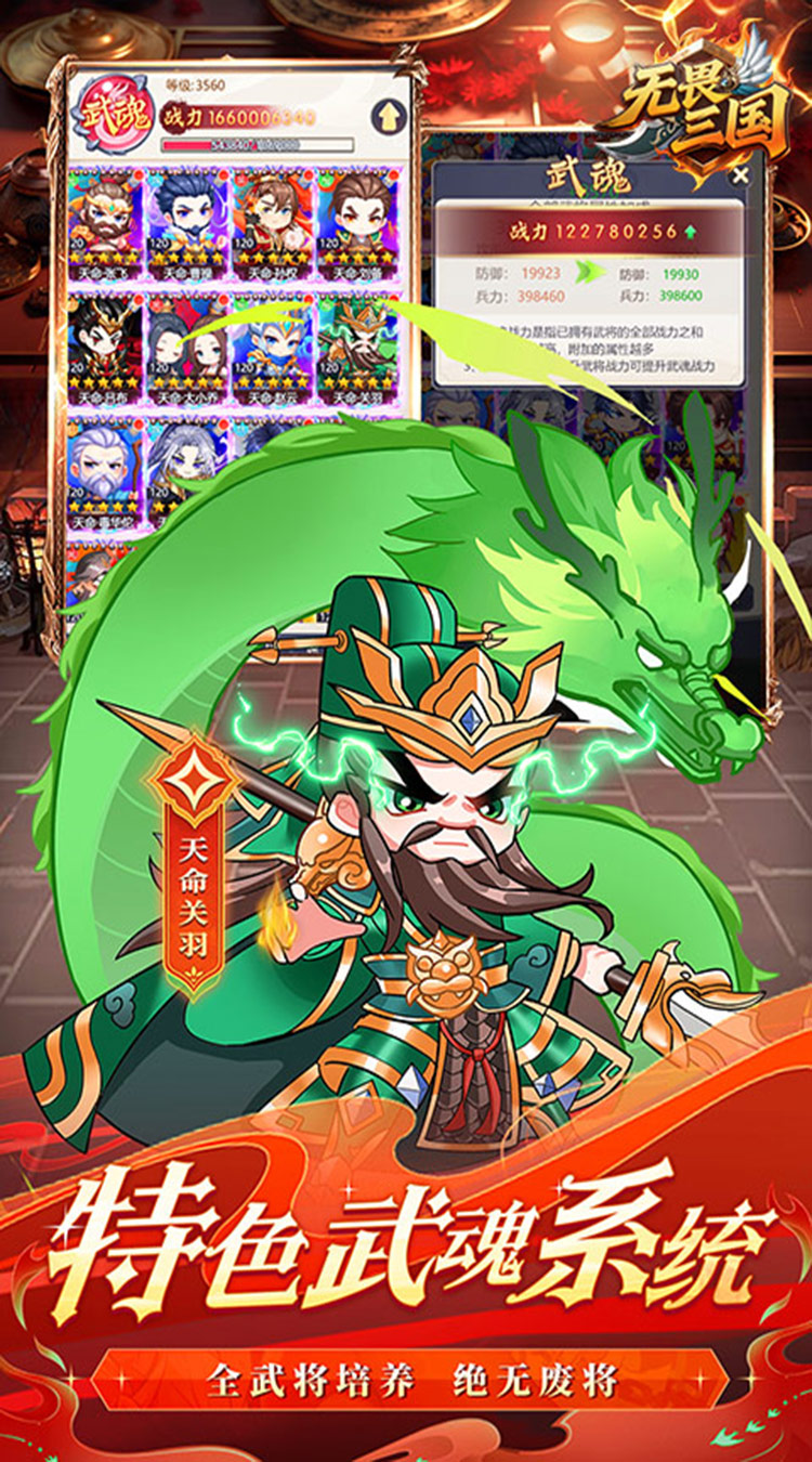 独创 “武魂”养成系统,让你的每一位三国名将都能为核心战力贡献力量,每一场战斗都是智谋的较量。