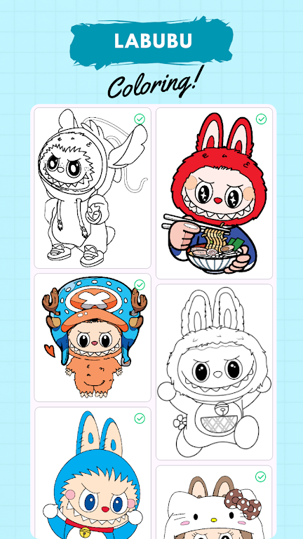 游戏中的插图设计精美,涵盖了丰富的主题,包含拉布布角色的各种形象和场景。从可爱的动物到奇幻的风景,每一个插图都散发着无限的魅力。玩家可以根据自己的兴趣选择不同的插图进行填色,不同的主题给玩家带来迥然不同的艺术体验。随着填色的深入,玩家将发现每一幅作品都是独一无二的艺术支持。